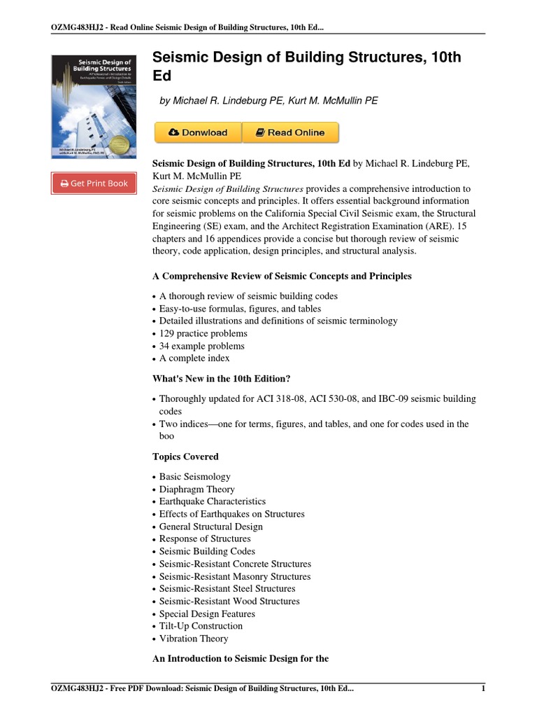 Home 11th 9781591263548 Seismic Design Of Building Structures 10th Book Seismic Design Of Building Structures 8th Edition By building design Download Ebook Seismic Design Of Building Structures 11th Ed Download Seismic Design Of Building Structures 11th Ed Ebook Seismic Design Of Building Structures 11th Ed ed Free Ebook Seismic Design Of Building Structures 11th. Lindeburg PE Kurt M. The 30 example problems.